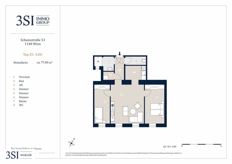 Der guten Ordnung halber halten wir fest, dass, sofern im Angebot nicht anders vermerkt, bei erfolgreichem Abschlussfall eine Provision anfällt, die den in der Immobilienmaklerverordnung BGBI. 262 und 297/1996 festgelegten Sätzen entspricht – das sind 3 % des Kaufpreises zzgl. 20 % USt. Diese Provisionspflicht besteht auch dann, wenn Sie die Ihnen überlassenen Informationen an Dritte weitergeben. Letztlich weisen wir darauf hin, dass wir als Doppelmakler tätig sind und ein familiäres/wirtschaftliches Naheverhältnis zwischen der 3SI Makler GmbH und der Verkäuferin besteht.