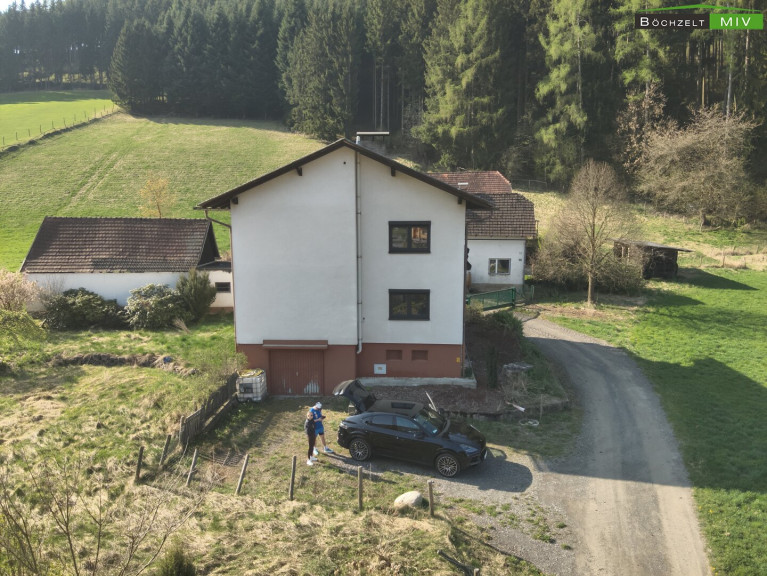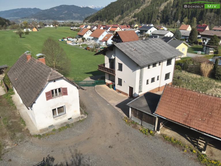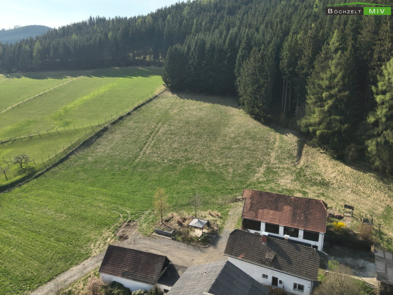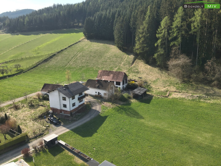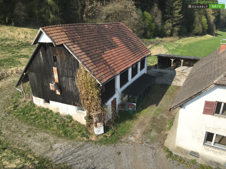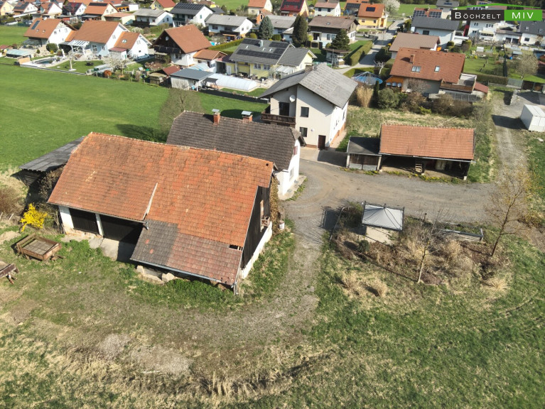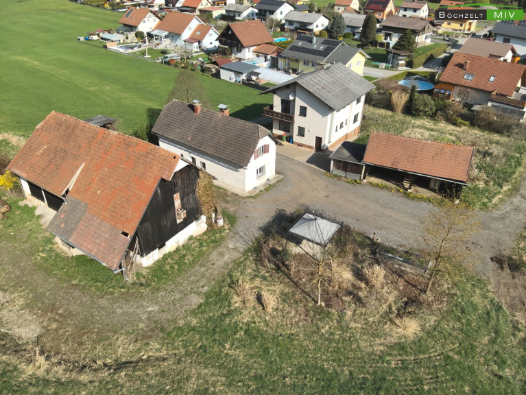 Die Liegenschaft besteht grundsätzlich aus dem 1977 errichteten und 2025 sanierten Wohngebäude, einer Einzelgarage mit angeschlossenem Carport und darüberliegendem Lagerraum, dem ehemaligen Wohngebäude, sowie dem Stallgebäude samt darüberliegender Heuberge.