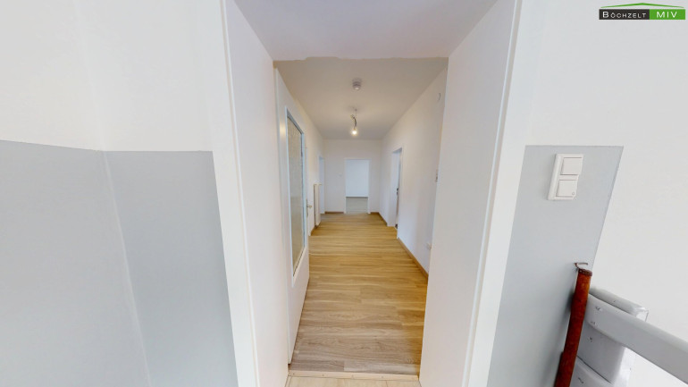 Das sanierte Wohnhausmit seinen knapp 146 m² Wohnnutzfläche und ca. 75 m² Kellerfläche verteilt sich auf 3 Geschosse. Ursprünglich wurde das Haus 1977 errichtet und 2024 - 2025 umfassend saniert. Das Kellergeschoss mit knapp 74,50 m² lässt sich einerseits von einer Innenstiege, andererseits von außen über die innenliegende Garage erreichen.Dort befinden sich neben diversen Lager- und Kellerräumlichkeiten auch eine Garage, der Heizraum sowie eine Waschküche die im ehemaligen Schutzraum untergebracht wurde. Das Erdgeschoss mit seinen knapp 72 m² besteht aus Vorraumbereichen, Abstellraum, einem sanierten Badezimmer samt Walk-in-Dusche und WC, einer Küche, Schlafzimmer und einem Wohnzimmer. Im Dachgeschoss mit seinen knapp 73,9 m², befinden sich Vorrräume, ein WC, ein Badezimmer mit Dusche und Wanne, eine Küche sowie 2 Zimmer. Man gelangt vom eigentlichen Wohnzimmer auf den knapp 8,7 m² großen Balkon. Die Liegenschaft verfügt über 2 getrennte Wohneinheiten weshalb man auch an eine Zweifamilienwohnhaussnutzung denken könnte.
