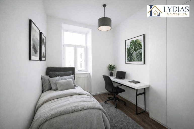 Zur Information: Die Abbildung des Wohnzimmers und des Schlafzimmers wurde virtuell gestaltet und dient der Veranschaulichung. Die Originalfotos befinden sich ebenfalls im Inserat.