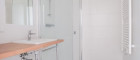 - geräumiges Badezimmer mit Waschbecken, Dusche und Waschmaschinenanschluss
