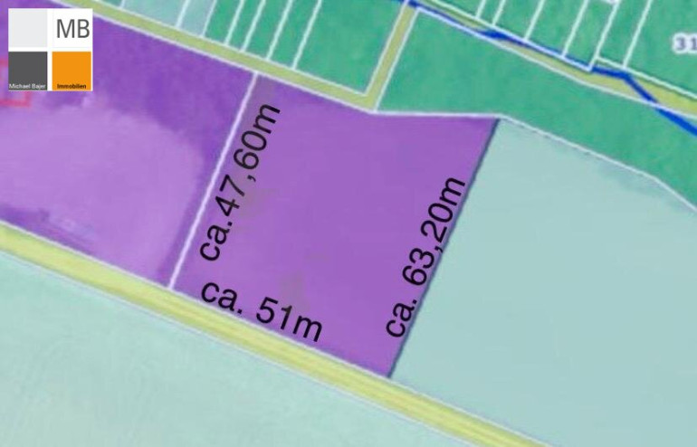 Länge ca. 51m x Breite linker Hand ca. 47,60m, Breite rechter Hand ca. 63,20m
