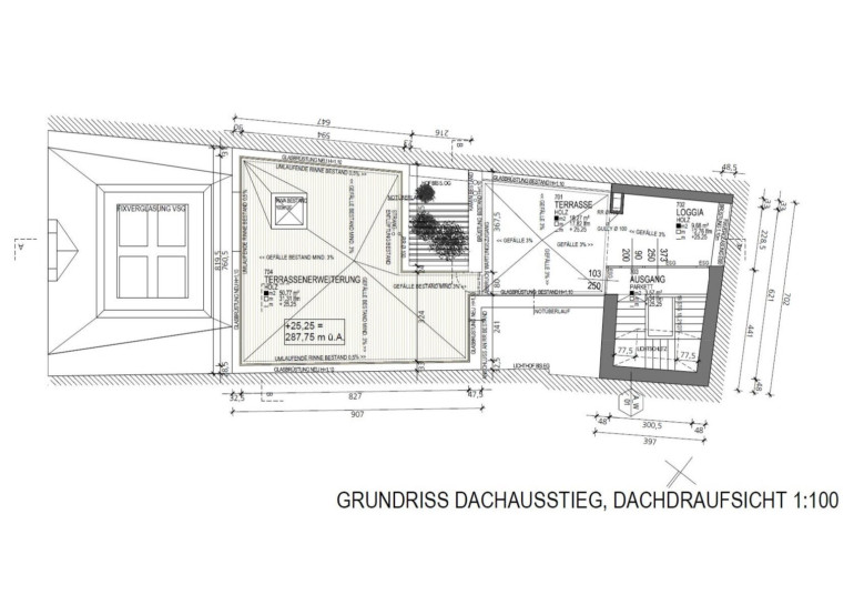 Ein absolutes Highlight für Kunden und Mitarbeiter ist die herrliche, nahezu uneinsehbare Dachterrasse, die einen Überblick über die Dachlandschaft im Zentrum und eine seltene Oase der Ruhe bietet. Sie schafft Raum für entspannte Pausen, stilvolle Meetings im Freien oder repräsentative Empfänge mit Blick über die Stadt.