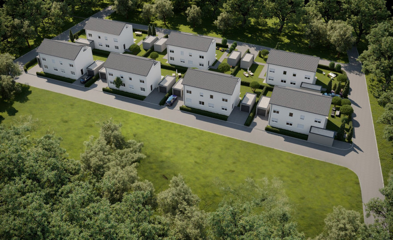 • 6 schlüsselfertige Doppelhaushälften (ohne Küche)