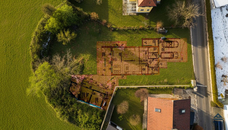 Ein baubehördlich bewilligtes Neubauprojekt bestehend aus Wohnhaus mit Carport (für zwei PKWs) und Nebengebäude besteht für das Grundstück ebenfalls bereits.