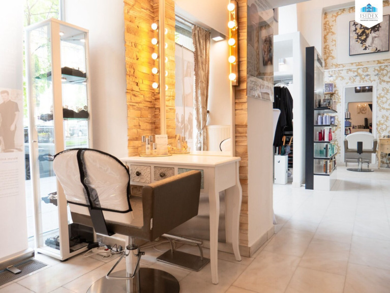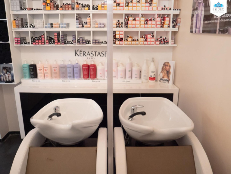 Auf einer Geschäftsfläche von 80² ist der Salon aufgeteilt in 3 Frisörplätzen mit 2 Waschplätzen, 1 Make-Up Platz, Maniküre/Pediküre - Ausstattung, 2 Kosmetik-Kabinen und Haarentfernungs-Platz.