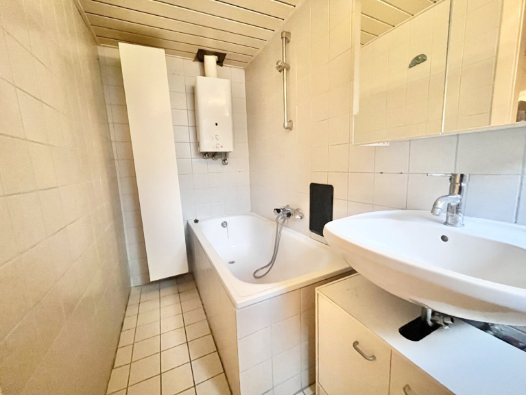 Fliesen, Laminatboden, Gas, Einbauküche, Badewanne