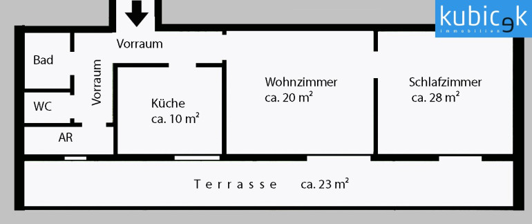 Ein absolutes Highlight ist die rund 23 m² große, traumhafte Terrasse, die sich über die gesamte Wohnungsbreite erstreckt. Dank der optimalen Südwest-Ausrichtung genießen Sie hier viele Sonnenstunden bis in die Abendstunden hinein – ideal zum Entspannen, Genießen oder für gesellige Abende im Freien. Besonders attraktiv sind die beiden Terrassenausgänge, die sowohl vom Wohnzimmer als auch vom Schlafzimmer aus erreichbar sind und den Außenbereich harmonisch in den Wohnraum integrieren.