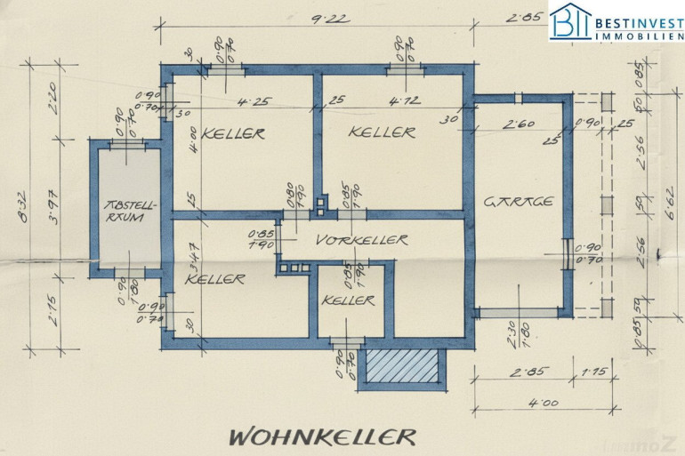 Wohnkeller (2m Raumhöhe, Fenster) mit Netto-Fläche von 77m2- über Innen und Außenstiege erreichbar
