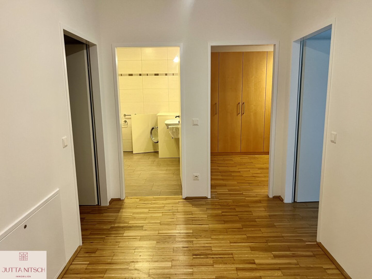 Ein weiteres Highlight dieser Wohnung ist der vom Tischler eingebaute, durchdachte Schrankraum, hier haben Sie Platz für alle Ihre gesamte Bekleidung und müssen sich keine Gedanken über Schränke und Stauraum machen.