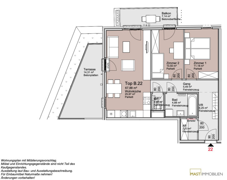 Details Wohnung Bauteil B Top 22: