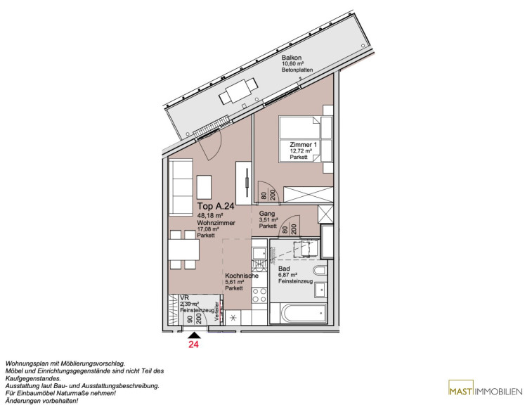 Alle verfügbaren Wohnungen finden Sie auf unserer Homepage unter www.mast-immo.at. Um Ihre Suche zu erleichtern, steht Ihnen auf unserer Projektseite www.anderschanze25.at ein Wohnungsnavigator zur Verfügung, der Ihnen hilft, sich einen Überblick über die Lage der einzelnen Wohnungen innerhalb des Komplexes zu verschaffen.