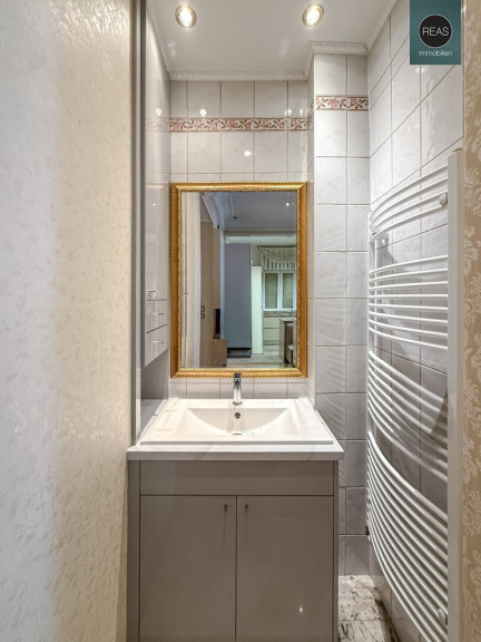 - 1 Nische mit Waschbecken, Einbau- und Unterbauwaschbecken und einem Handtuchheizkörper
