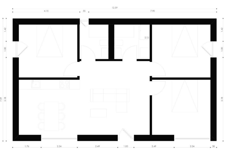 Dieses Modell vereint offenes Wohndesign mit praktischer Flexibilität: Ein lichtdurchfluteter Hauptraum im Erdgeschoss mit großzügiger Verglasung öffnet sich zur Berg- und Weinwelt von Klöch und schafft ein einladendes Ambiente. Die großflächigen Glasfronten verbinden Innen- und Außenraum nahtlos – jeder Blick wird zum Naturerlebnis mit Panoramablick auf Rebhänge und Golfgrün.
