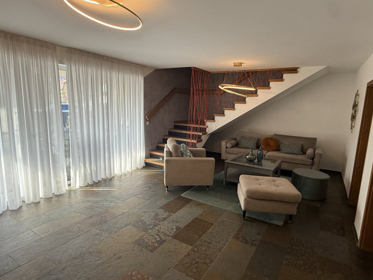 Das Haus überzeugt durch eine moderne Architektur, einen lichtdurchfluteten, offenen Wohn- und Essbereich sowie ein durchdachtes Raumkonzept, das viel Platz und Wohnkomfort bietet. Große Fensterflächen schaffen eine helle, freundliche Atmosphäre und ermöglichen einen herrlichen Ausblick ins Grüne.