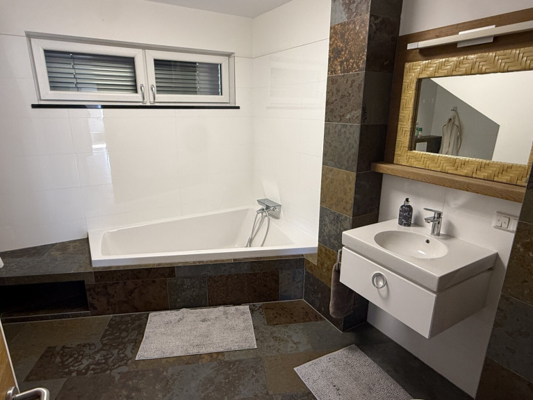 Für nachhaltiges und effizientes Wohnen sorgt eine Erdwärmeheizung, die niedrige Betriebskosten und ein angenehmes Raumklima garantiert. Ein besonderes Highlight ist der Whirlpool, der zum Entspannen und Abschalten einlädt.