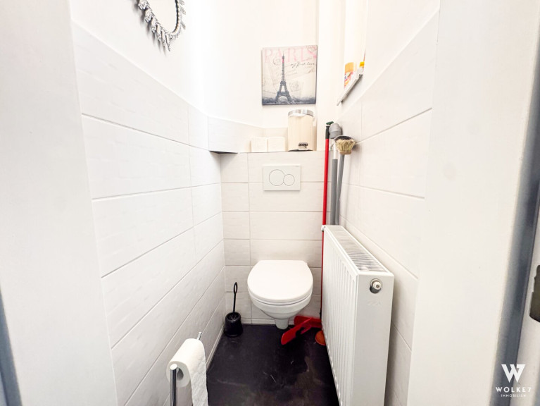Das ruhige Schlafzimmer ist zum Innenhof ausgerichtet und bietet optimale Erholung. Das Badezimmer sowie ein separates WC unterstreichen den praktischen Grundriss.