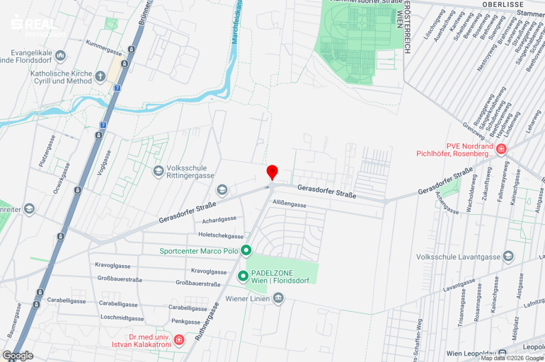 Lokale Nahversorger und Lebensmittelgeschäfte sorgen für eine perfekte Infrastruktur und der Anschluss an den öffentlichen Verkehr durch die S-Bahn, U-Bahn Leopoldau (8 min. mit Buslinie 32A) und das Radwegsystem schaffen selbst am Stadtrand ein Gefühl, mitten im Geschehen zu sein.