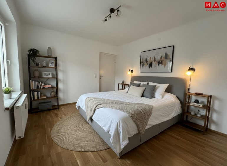 Die frisch sanierte 3-Zimmer-Wohnung im obersten Stock bietet sonniges Wohnen, viel Privatsphäre und eine ruhige Grünlage in angenehmer Nachbarschaft. Moderne Ausstattung, flexible Raumgestaltung und ein stilvolles Badezimmer mit ebenerdiger Dusche sorgen für hohen Wohnkomfort. Dank guter Infrastruktur, Nahversorgung und Öffi-Anbindung vereint die Lage Erholung und Alltag perfekt. Zur besseren Veranschaulichung des Wohnpotenzials wurden mögliche Einrichtungsvorschläge mithilfe künstlicher Intelligenz dezent visualisiert.