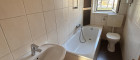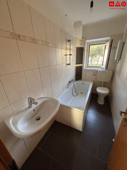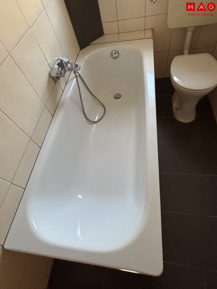 - kompaktes Badezimmer mit gemütlicher Badewanne, WC und Fenster