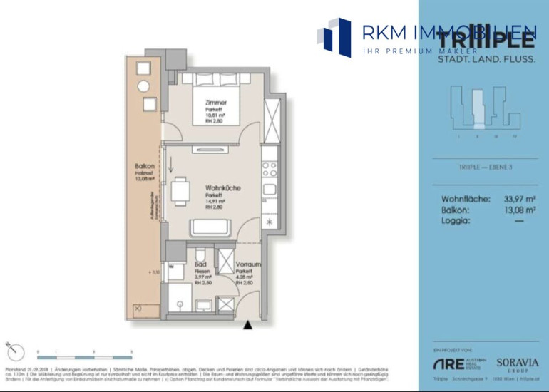 Moderne 2-Zimmer-Wohnung mit Balkon - TrIIIple Wien