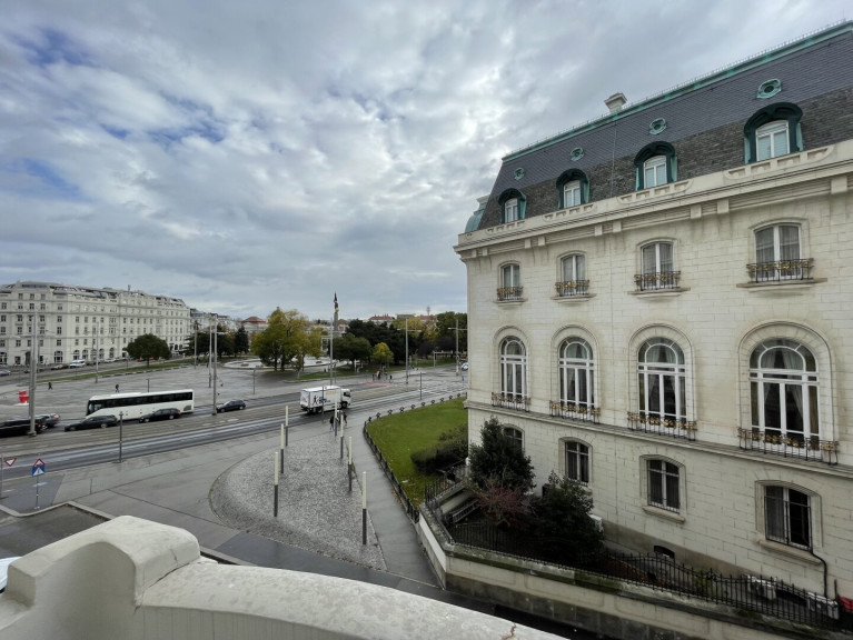 Dieses Top-Büro umfasst den gesamten 2. Liftstock eines eindrucksvollen Palais am Schwarzenbergplatz, gleich neben der Französischen Botschaft.
