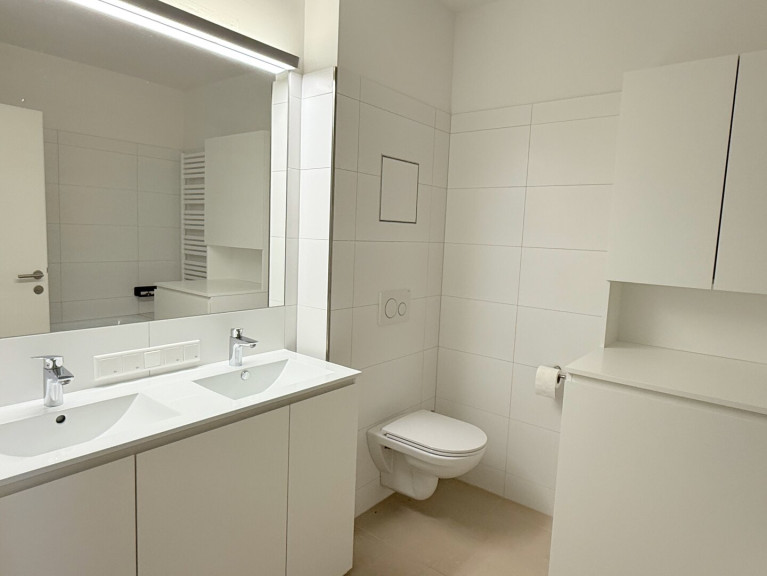 Drei Schlafzimmer, ein großzügiges Badezimmer mit Doppelwaschbecken, Badewanne, Waschmaschinenanschluss, WC.