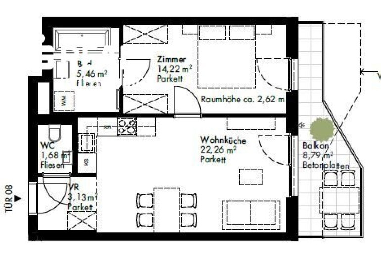 - Hochwertige Ausstattung: Fußbodenheizung bzw. Fußbodenkühlung (Temperierung), 3-Scheiben-Isolierverglasung, Parkettboden, Feinsteinzeugfliesen uvm.