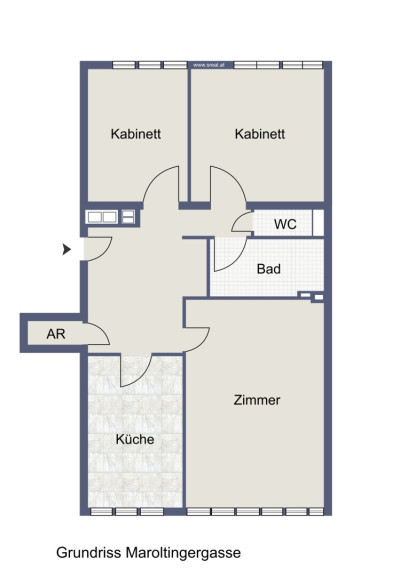 4. Stock mit Lift. Hofseitig 2 Schlafzimmer, Wohnsalon und Küche straßenseitig. Perfekter Grundriss.