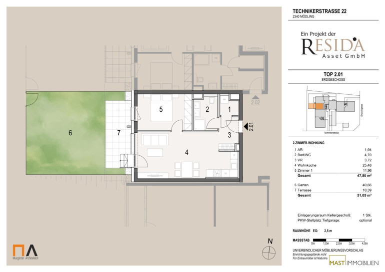 Die Technikerstraße 22 befindet sich in ausgezeichneter Lage innerhalb Mödlings – einer der beliebtesten Wohngegenden im Süden von Wien. Der Standort verbindet natürliche Umgebung mit optimaler Infrastruktur.
