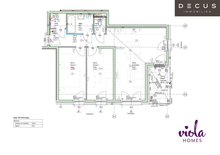Die Wohnung in Stiege 2 Top 13 befindet sich im 2. Obergeschoß und teilt sich wie folgt auf: