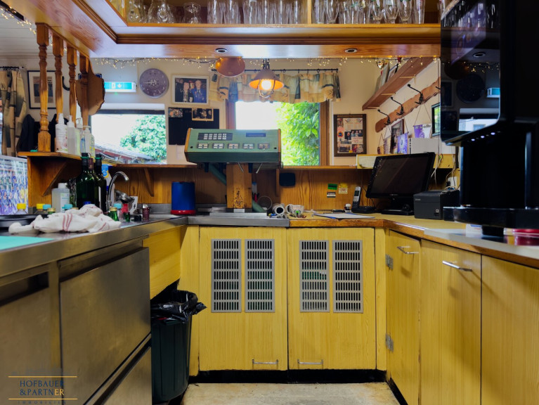 Der Gastraum verfügt über rund 80 Sitzplätze und strahlt durch den erhaltenen Kachelofen eine gemütliche Atmosphäre aus. Eine zusätzliche Gasheizung sorgt für verlässliche Wärmeversorgung. Die Küche wurde bereits vor etwa zwei Jahren modernisiert und ist funktional ausgestattet. Im selben Zeitraum wurden auch die Fenster sowie das Dach des hinteren Gebäudeteils erneuert – wichtige bauliche Schritte, die den Grundstein für eine weiterführende Sanierung legen.