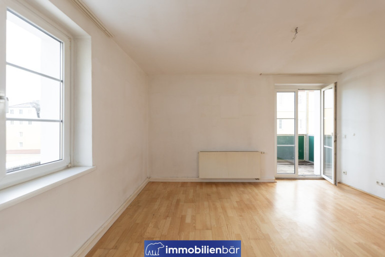 3 Zimmer (2 Schlafzimmer, Wohnzimmer und Küche extra, Balkon, Abstellraum und Bad mit WC)