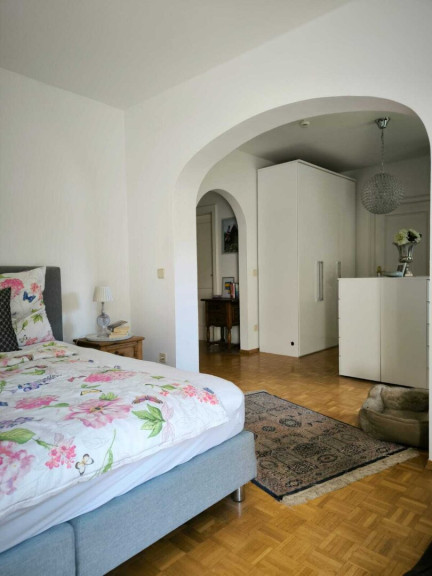 Erster Bereich: Apartment mit eigenem Eingang, Flur, großem Schlafzimmer mit Balkon, Umkleidezimmer, großzügigem Abstellraum, WC und großem Badezimmer.