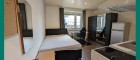- Hauptraum: Wohnbereich mit Küchenblock. Durchdachte Raumnutzung mit Raumtrenner, der den Schlafbereich vom Badezimmer abtrennt.