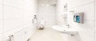 getrennte Sanitäreinheiten für Patient:innen und Personal, inkl. barrierefreiem, behindertengerechtem WC