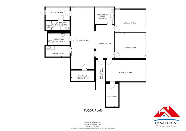 Auf insgesamt ca. 169,5 m² Praxisfläche stehen Ihnen zur Verfügung: