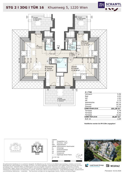 Wohnfläche: ca. 101,39m² + 1.Terrasse: ca. 12,62m² 2.Terrasse: ca. 8,46m² + 3.Terrasse: ca. 5,79m² + Kellerabteil: ca. 2,69m²