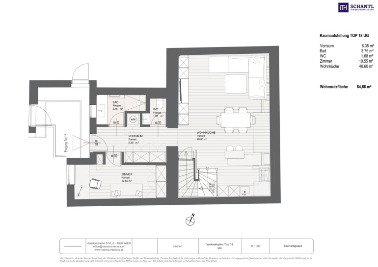 Der 3. Bezirk zählt zu den gefragtesten Wohnlagen Wiens. Die Bechardgasse liegt ruhig und dennoch zentral – nahe der Landstraßer Hauptstraße, Rochusmarkt, Stadtpark und hervorragenden öffentlichen Verkehrsanbindungen. Nahversorgung, Gastronomie und Parks sind in wenigen Minuten erreichbar.
