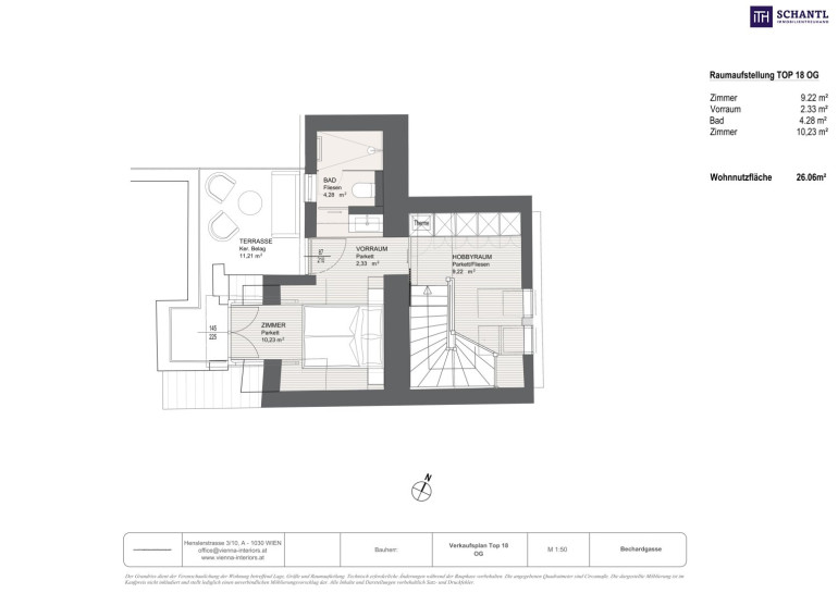 Diese außergewöhnliche Dachgeschosswohnung in der Bechardgasse verbindet exklusives Wohnen, elegante Architektur und einen beeindruckenden Fernblick über Wien. Auf 91 m² Wohnfläche und zusätzlich 26,5 m² sonniger Terrassenfläche genießen Sie eine perfekte Mischung aus Großzügigkeit, Design und Ruhe — mitten im begehrten 3. Bezirk.