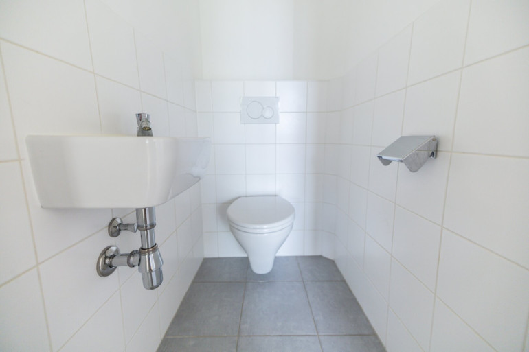 - Separates WC: Mit Handwaschbecken, bequem vom Vorraum aus zugänglich.
