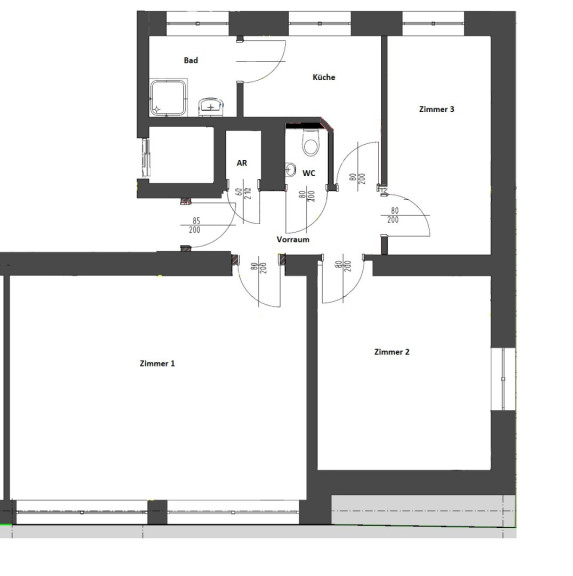 - Vielseitige Zimmer: Vorraum, Küche, Badezimmer, Extra WC, Abstellraum und 3 Zimmer.