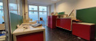 Ergänzt wird die Fläche durch zwei geschlechtergetrennte WC-Anlagen, eine Mitarbeiterküche mit Essplatz sowie einen zusätzlichen Raum für administrative Tätigkeiten. Ein eigener Mitarbeitereingang an der Rückseite sorgt für eine klare interne Erschließung.