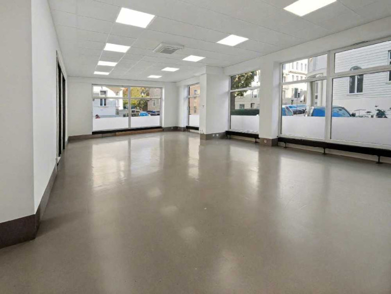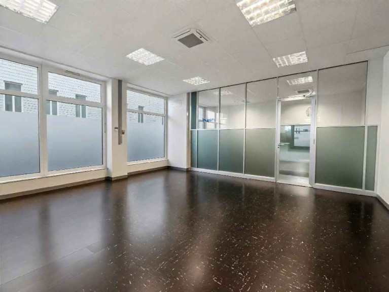Der Eingangsbereich bildet ein großzügiger Hauptraum mit antistatischem Bodenbelag, der flexibel für Kundenempfang, Wartezone, Verkauf oder kombinierte Nutzungen eingesetzt werden kann. Zwei angrenzende Räume eignen sich ideal als Werkstatt, Behandlungsraum, Servicestation oder Lager. Im hinteren Bereich befinden sich ein separates Büro sowie ein Besprechungszimmer mit Balkon, beide ruhig zum Innenhof ausgerichtet.
