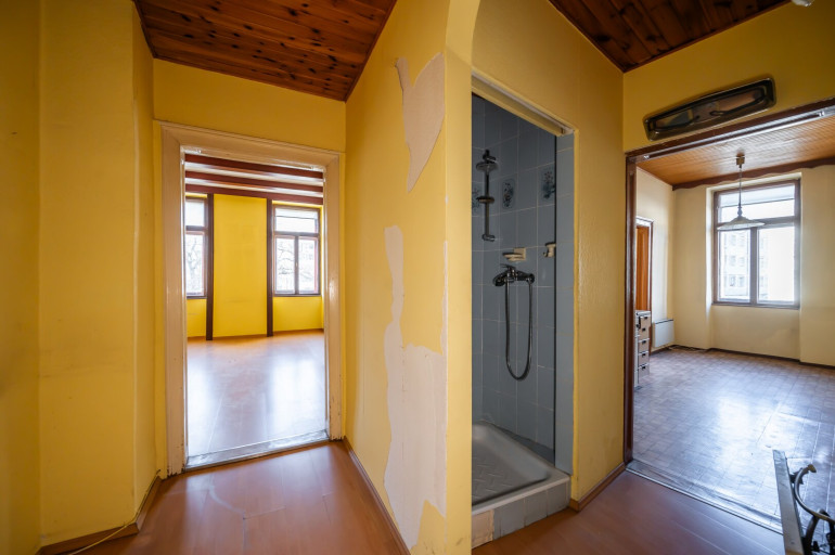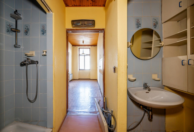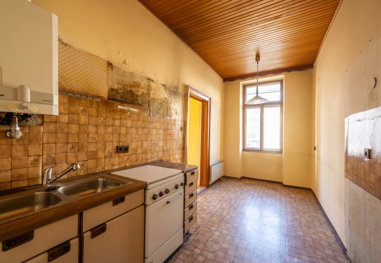 Die Wohnung befindet sich in einem komplett sanierungsbedürftigen Zustand (ohne Heizung) und wird im derzeitigen Zustand verkauft.