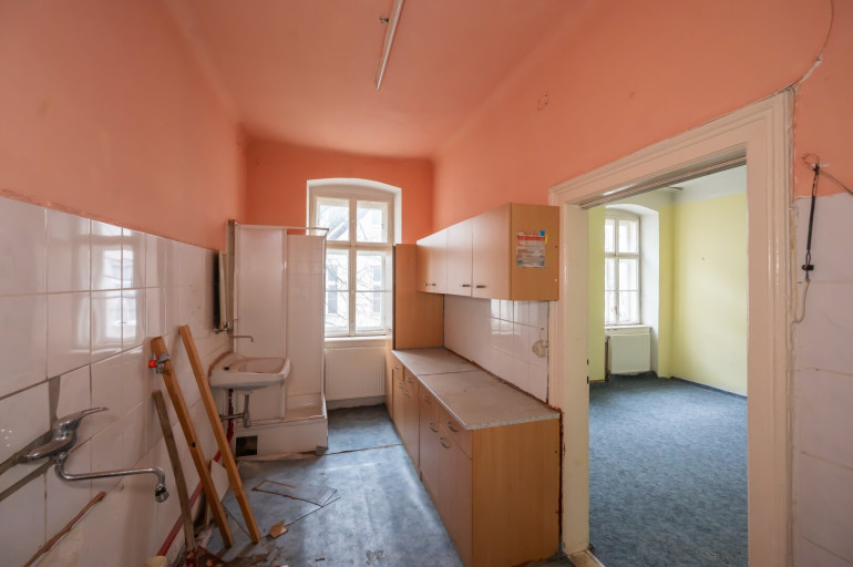 Die Wohnung ist vollständig sanierungsbedürftig und verfügt über keine Heizung und kein Badezimmer/WC.