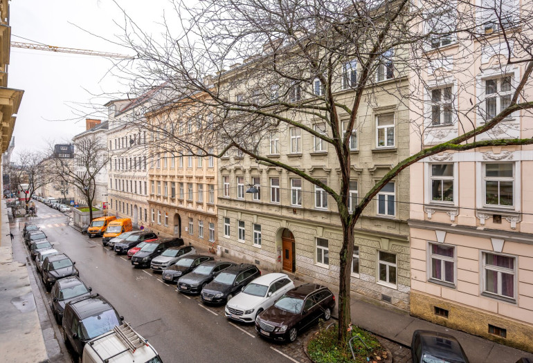 Die Wohnung liegt in einem gepflegten Altbau ohne Lift. Das Gebäude wird laufend instand gehalten und besticht durch den klassischen Wiener Altbaucharme.