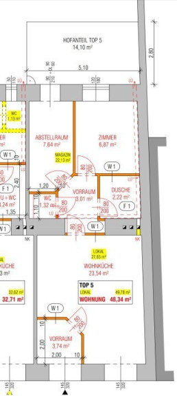 Der Vorteil der Immobilie wäre die Option, das Objekt als Wohnung oder Lokal weiterhin zu verwenden. Zu der Wohnfläche von 48,34 m² kommt noch ein dazugehöriger Hofanteil von 14,10 m².