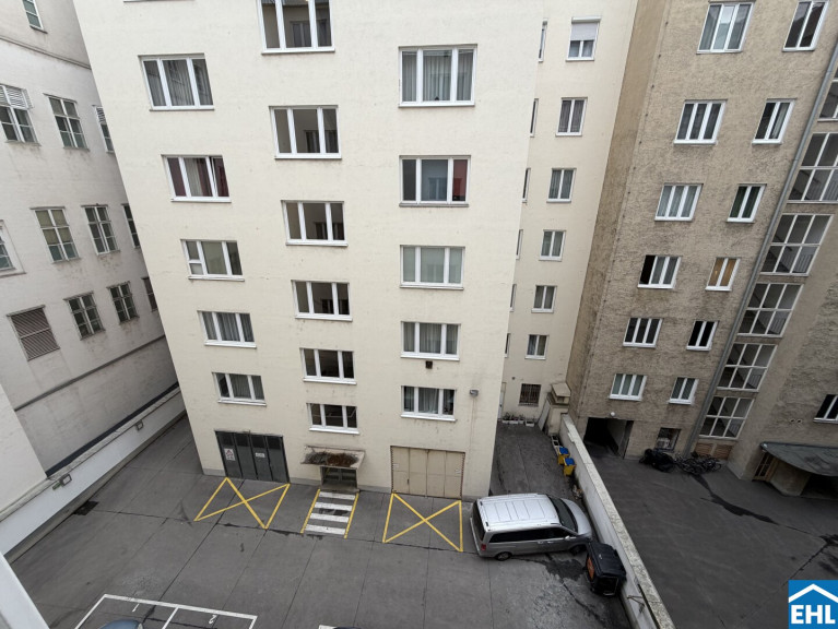 Komfort ist ebenfalls gewährleistet: Ein Aufzug bringt Sie bequem in den 4. Stock, ein Kellerabteil bietet zusätzlichen Stauraum. Besonders attraktiv sind die Stellplätze im Innenhof, die nach dem First-come-first-serve-Prinzip genutzt werden können – ein seltener Vorteil in der City, der den urbanen Alltag deutlich erleichtert.