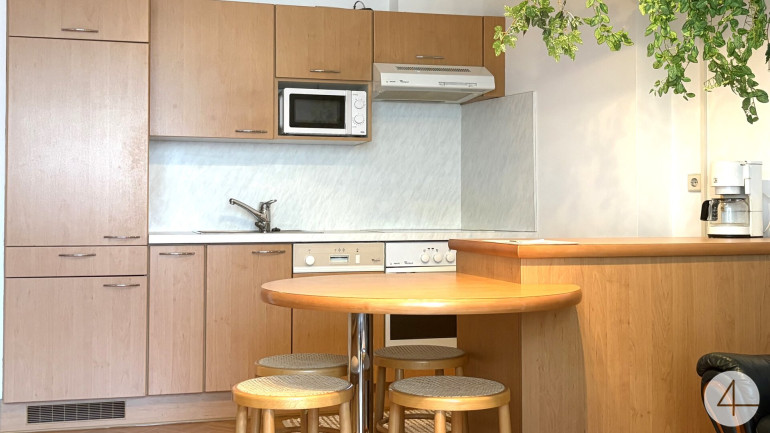 Die Wohnung ist exklusiv ausgestattet (Geschirrspüler, Waschmaschine, E-Herd, Mikrowelle, Kühlschrank) eingerichtet. Die Wohnung wird inklusive Küche und Mobiliar abgegeben.